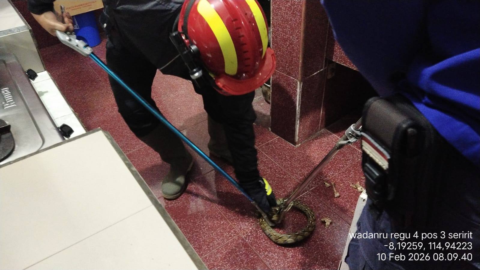 Selasa 10/2 Dinas Pemadama Kebakaran dan Penyelamatan Buleleng melalui Bidang Pemadaman Regu 4 Pos Sektor Pemadam Kebakaran Seririt melaksanakan evakuasi ular piton di rumah Luh Putu Arsini yang beralamat di Jalan Sudirman No 89 Seririt. Ular yang posisinya di dapur itu berhasil dievakuasi dalam waktu 6 menit.