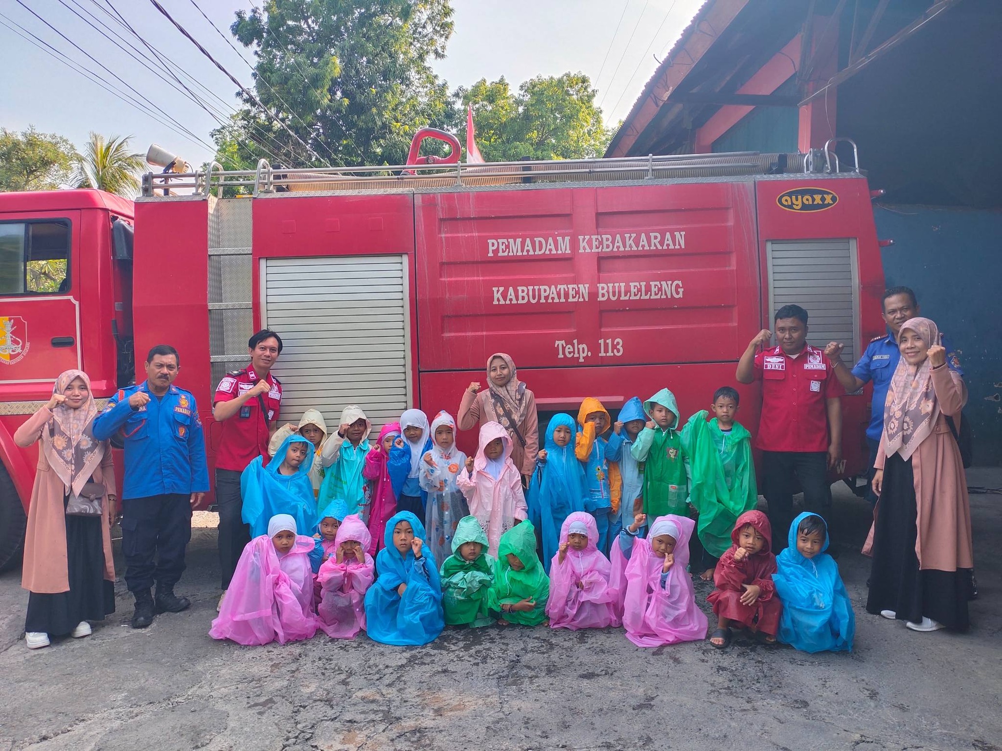 Kamis 5 Februari 2026 Dinas Pemadam Kebakaran dan Penyelamatan Buleleng melalui Bidang Pencegahan melaksanakan kegiatan sosialisasi dengan topik "Pengenalan Tupoksi dan Fasilitas Dinas Pemadam Kebakaran dan Penyelamatan Kabupaten Buleleng" kepada siswa-siswi TK Riyadlul Jannah Panji Anom-Singaraja yang berjumlah 30 orang.
