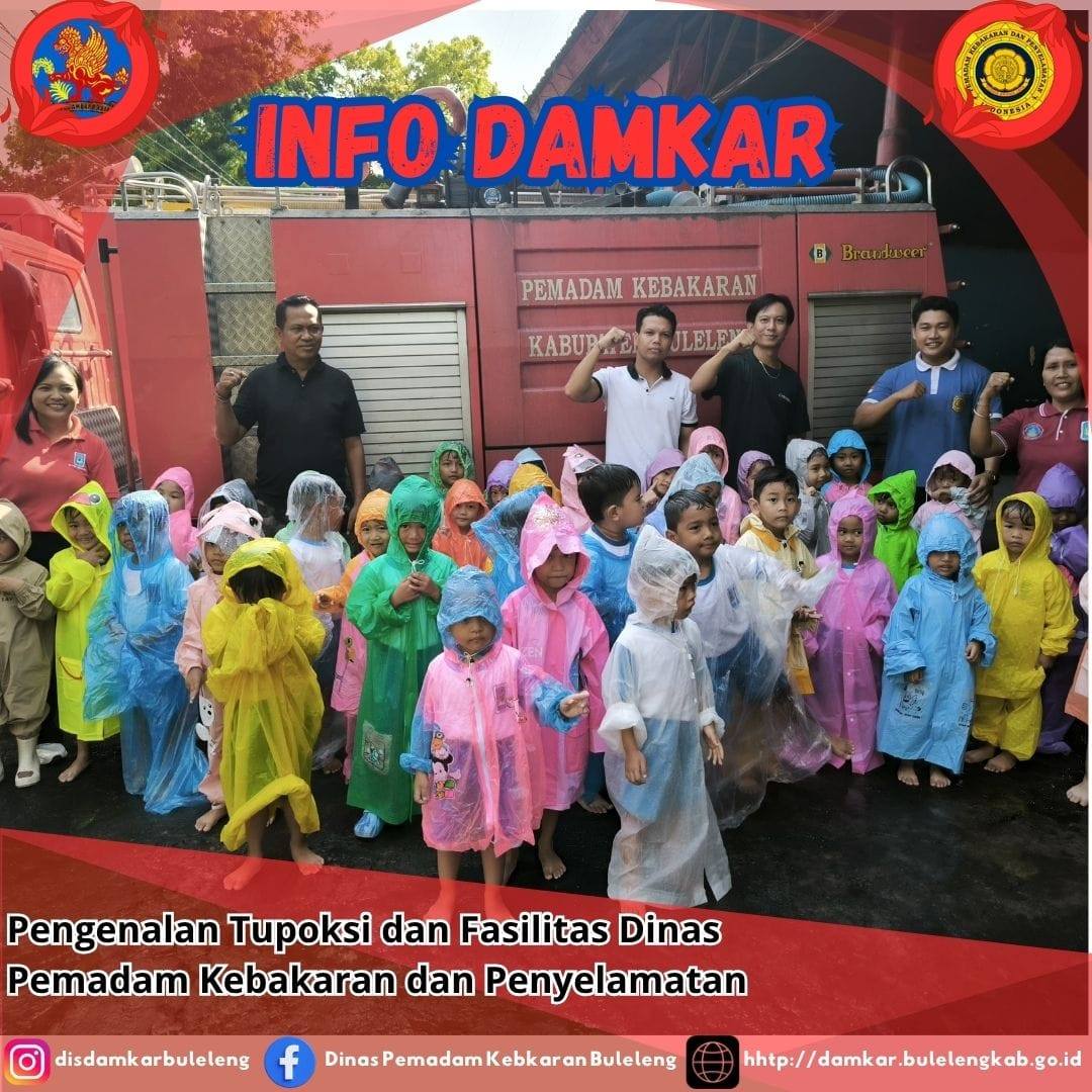 Rabu 22/10 Dinas Pemadam Kebakaran dan Penyelamatan Buleleng melalui Bidang Pencegahan melaksanakan kegiatan sosialisasi dengan topik "Pengenalan Tupoksi dan Fasilitas Dinas Pemadam Kebakaran dan Penyelamatan Kabupaten Buleleng" kepada siswa-siswi TK Laboratorium Undiksha Singaraja yang berjumlah 35 siswa, serta memberikan edukasi tentang pencegahan kebakaran awal tentang kebocoran gas LPG 3kg kepada orang tua siswa.