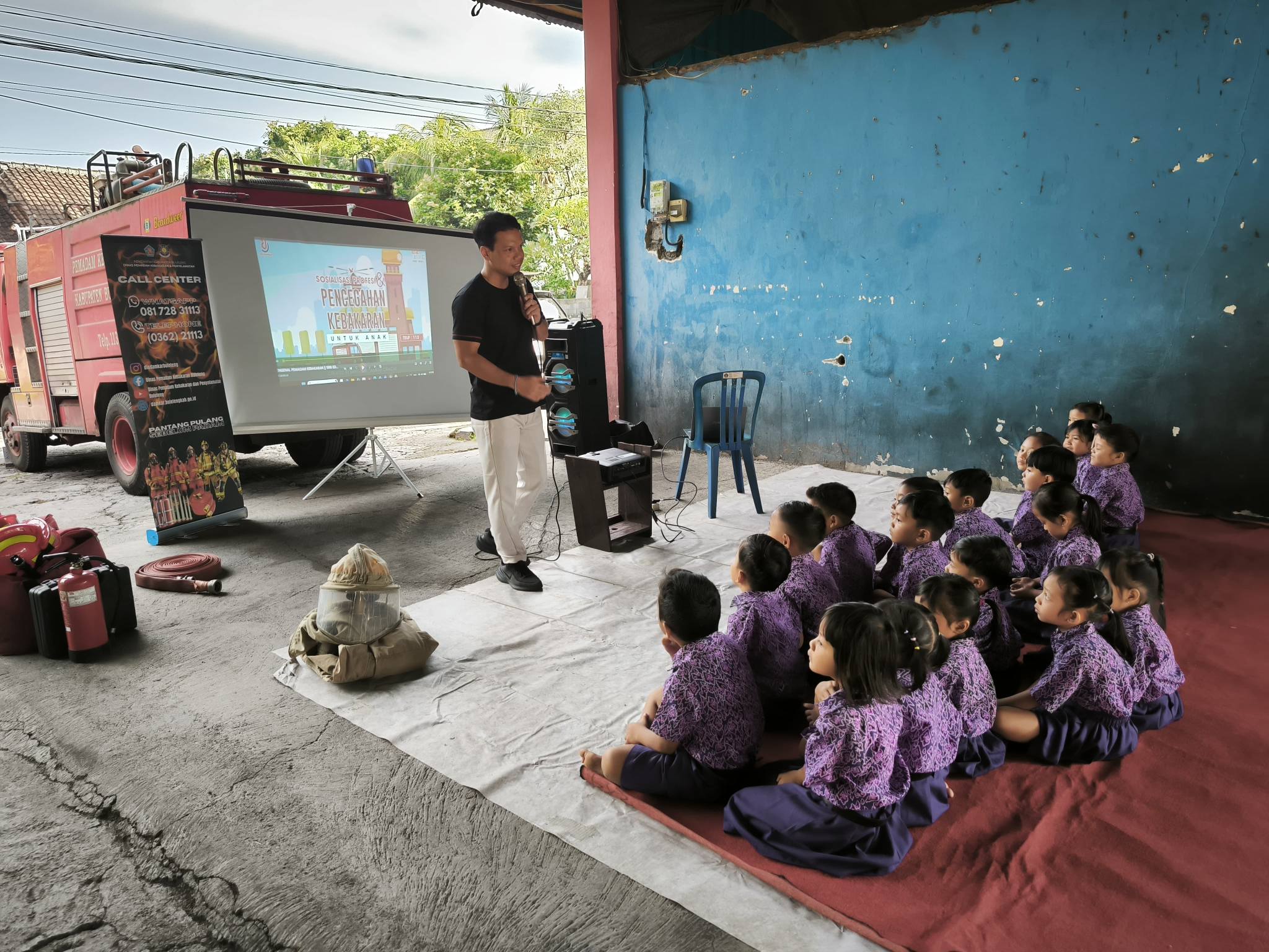 Kamis, 12 Pebruari 2026 Dinas Pemadam Kebakaran dan Penyelamatan melalui Bidang Pencegahan Menerima kunjungan TK Kumara Buana Sukasada dalam kesempatan ini memberikan Sosialisasi, tuk poksi Dinas Pemadam Kebakaran dan Penyelamatan dan edukasi pencegahan dini bahaya kebakaran diikuti 19 orang siswa/siswi, guru dan orang tua murid.